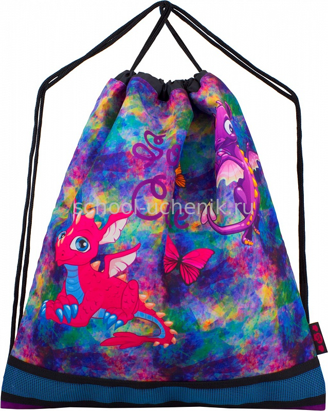 Мешок для сменной обуви, декорированный под ранец, с сеточкой для циркуляции воздуха.