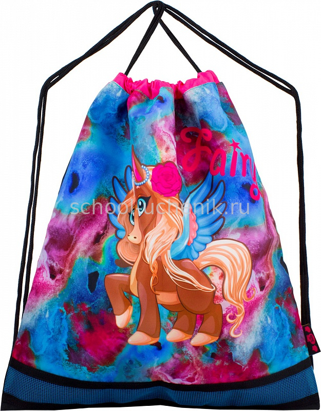 Мешок для сменной обуви, декорированный под ранец, с сеточкой для циркуляции воздуха.