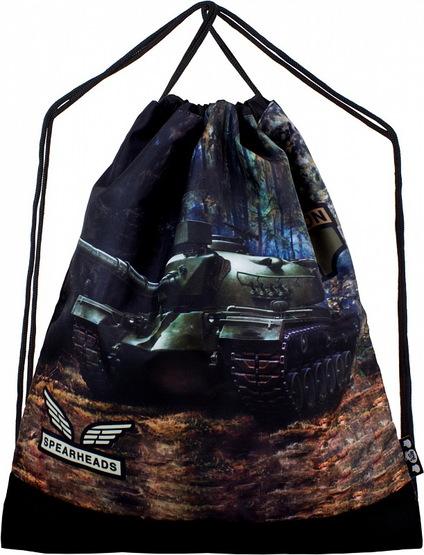 Мешок для сменной обуви, декорированный под ранец, с сеточкой для циркуляции воздуха.
