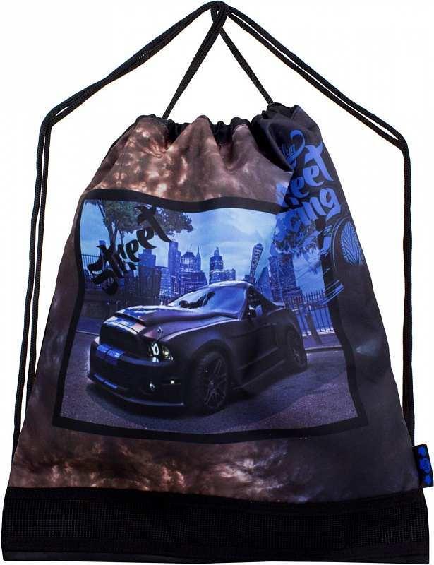 Мешок для сменной обуви, декорированный под ранец, с сеточкой для циркуляции воздуха.