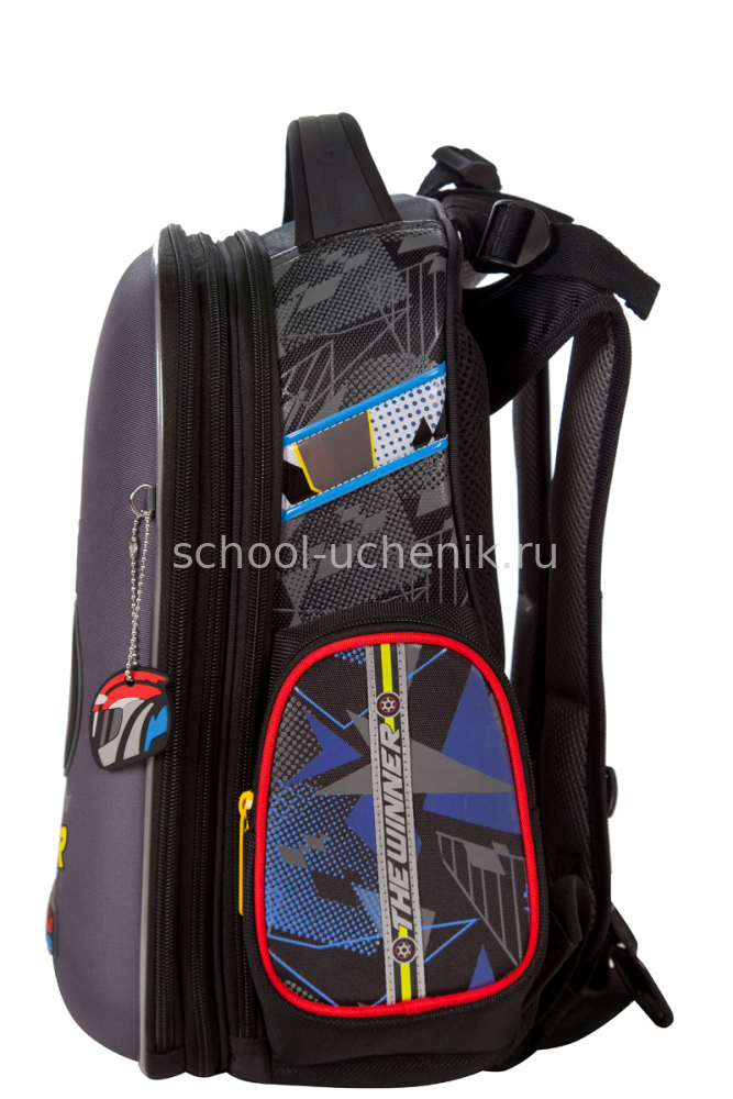 - два больших отделения на молниях. В основном, самом большом отделении расположены жесткие перемычки- вставки, для комфортного размещения тетрадей или учебников. В переднем отделении предусмотрен органайзер с карманом для мобильного телефона, сетчатым карманом для мелочей, отделениями для ручек и карандашей, подвеской для ключей.