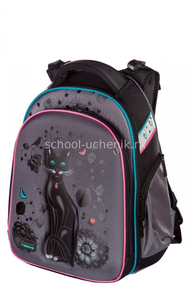 - три больших отделения на молниях. В основном, самом большом отделении расположены жесткие перемычки- вставки, для комфортного размещения тетрадей или учебников. В переднем отделении предусмотрен органайзер с карманом для мобильного телефона, сетчатым карманом для мелочей, отделениями для ручек и карандашей, подвеской для ключей.