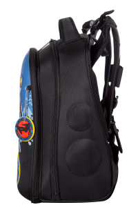 - три больших отделения на молниях. В основном, самом большом отделении расположены жесткие перемычки- вставки, для комфортного размещения тетрадей или учебников. В переднем отделении предусмотрен органайзер с карманом для мобильного телефона, сетчатым карманом для мелочей, отделениями для ручек и карандашей, подвеской для ключей.