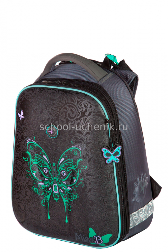 - три больших отделения на молниях. В основном, самом большом отделении расположены жесткие перемычки- вставки, для комфортного размещения тетрадей или учебников. В переднем отделении предусмотрен органайзер с карманом для мобильного телефона, сетчатым карманом для мелочей, отделениями для ручек и карандашей, подвеской для ключей.