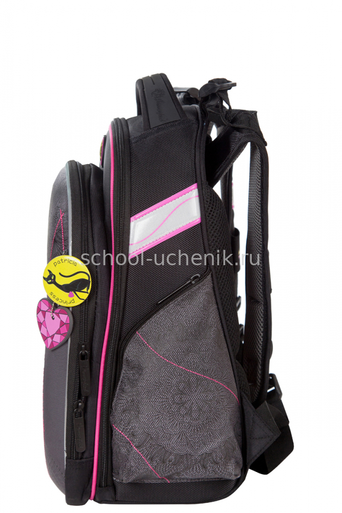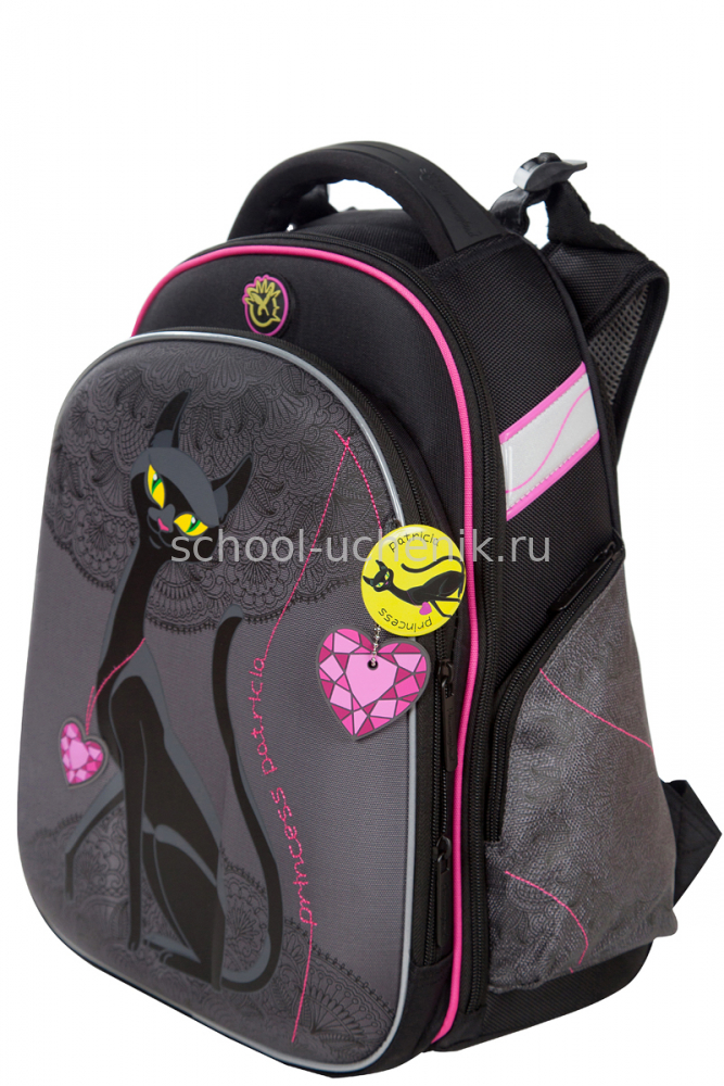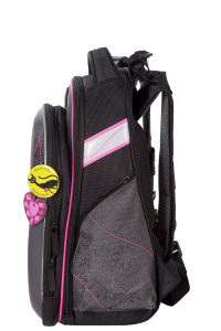 - три больших отделения на молниях. В основном, самом большом отделении расположены жесткие перемычки- вставки, для комфортного размещения тетрадей или учебников. В переднем отделении предусмотрен органайзер с карманом для мобильного телефона, сетчатым карманом для мелочей, отделениями для ручек и карандашей, подвеской для ключей.
