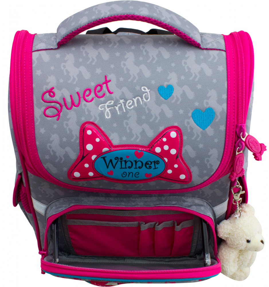 На передней части ранца расположен карман, украшенный объемной 3D картинкой на молнии.