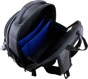 Основное большое отделение у спины, с тканевыми разделителями, для школьных принадлежностей.