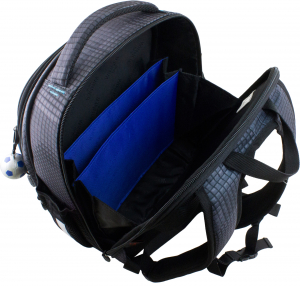 Основное большое отделение у спины, с тканевыми разделителями, для школьных принадлежностей.