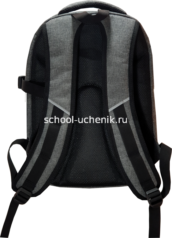 Рюкзак с двумя отделениями, двумя большими передними карманами и одним боковым карманом на молнии. Плотная спинка с анатомическими элементами, мягкие лямки-майка регулируются по длине. Рюкзак снабжен светоотражающими элементами.