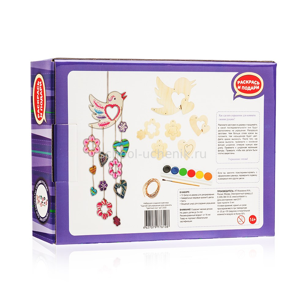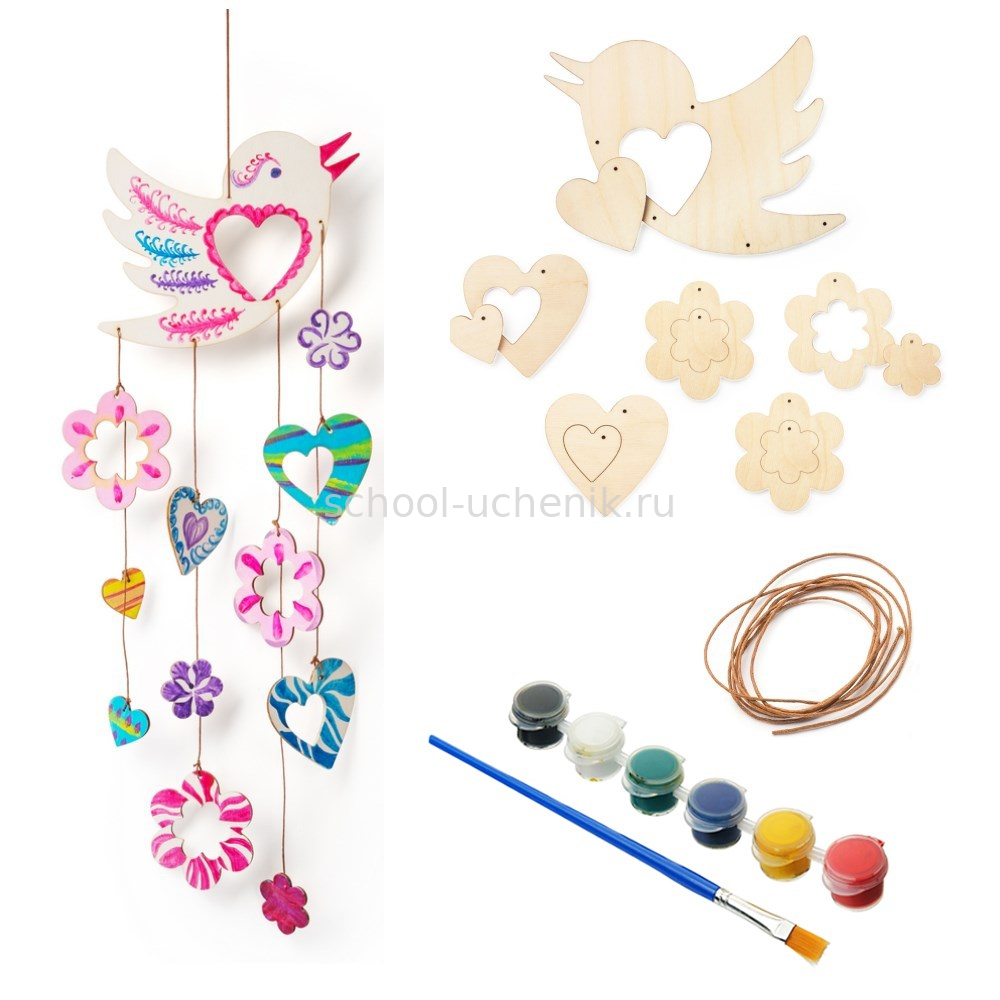 | В наборе: | краски, кисточка, деревянные заготовки, шнурок |