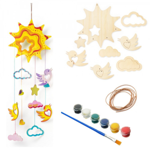 В наборе: деревянные заготовки для раскрашивания, краски и кисть, шнур для сборки подвески