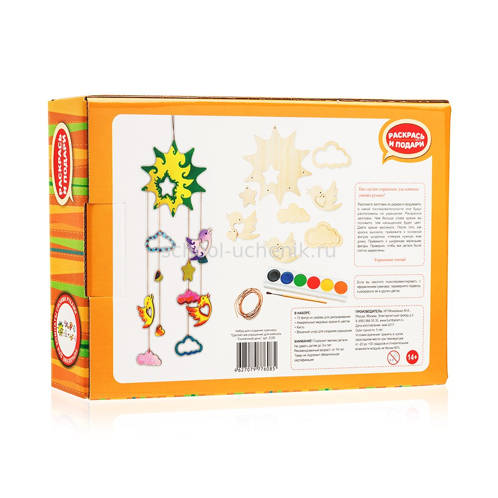 | В наборе: | краски, кисточка, деревянные заготовки, шнурок |