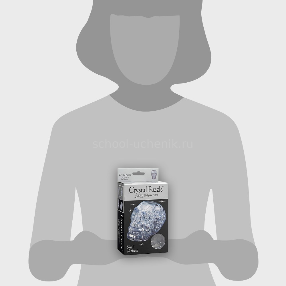 Этот необычный 3D-пазл из серии Crystal puzzle привлекает внимание окружающих и радует высокой детализацией. Пазл состоит из 49 деталей и относится к среднему уровню сложности. Эффектный серебристый череп собирается по слоям из объемных деталей, каждая из которых обладает уникальной формой.