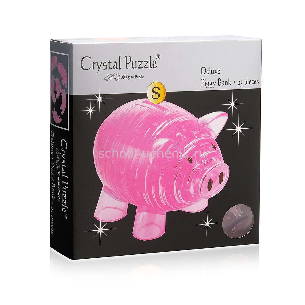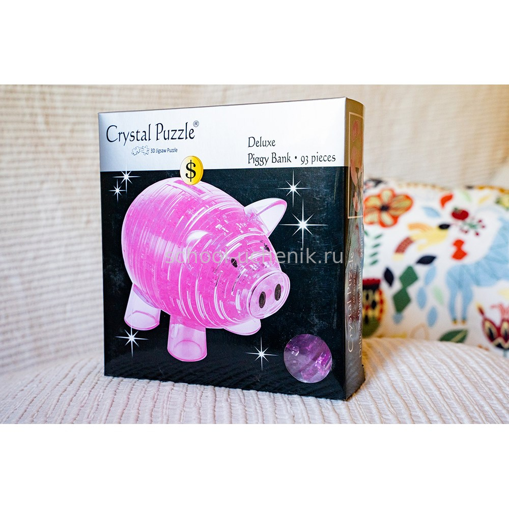 3D-пазл «Копилка «Хрюшка» из серии Crystal puzzle собирается из 93 деталей. Эту головоломку достаточно сложно и интересно собирать, а результатом станет полноценная копилка с прорезью для денег. Чтобы достать деньги, вам нужно просто разобрать пазл, а потом собрать его заново.