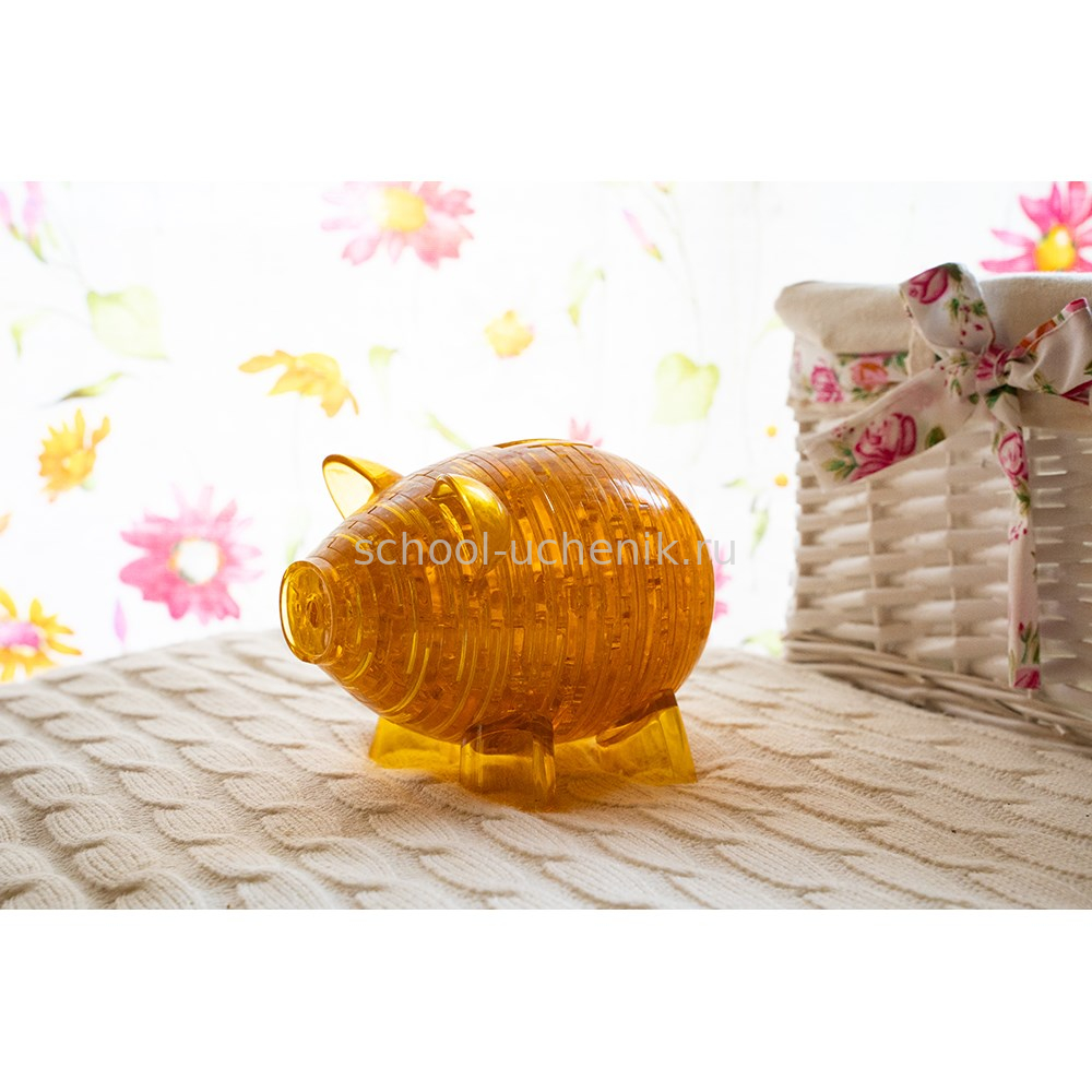 Перед вами 3D-пазл «Копилка «Хрюшка» из серии Crystal puzzle. Это головоломка большого размера, в ней целых 93 детали. Собирать ее непросто, зато в результате у вас получится настоящая копилка! В спинке хрюши – прорезь для монет или купюр. С помощью этой головоломки у вас будет неплохой шанс скопить немного наличных.