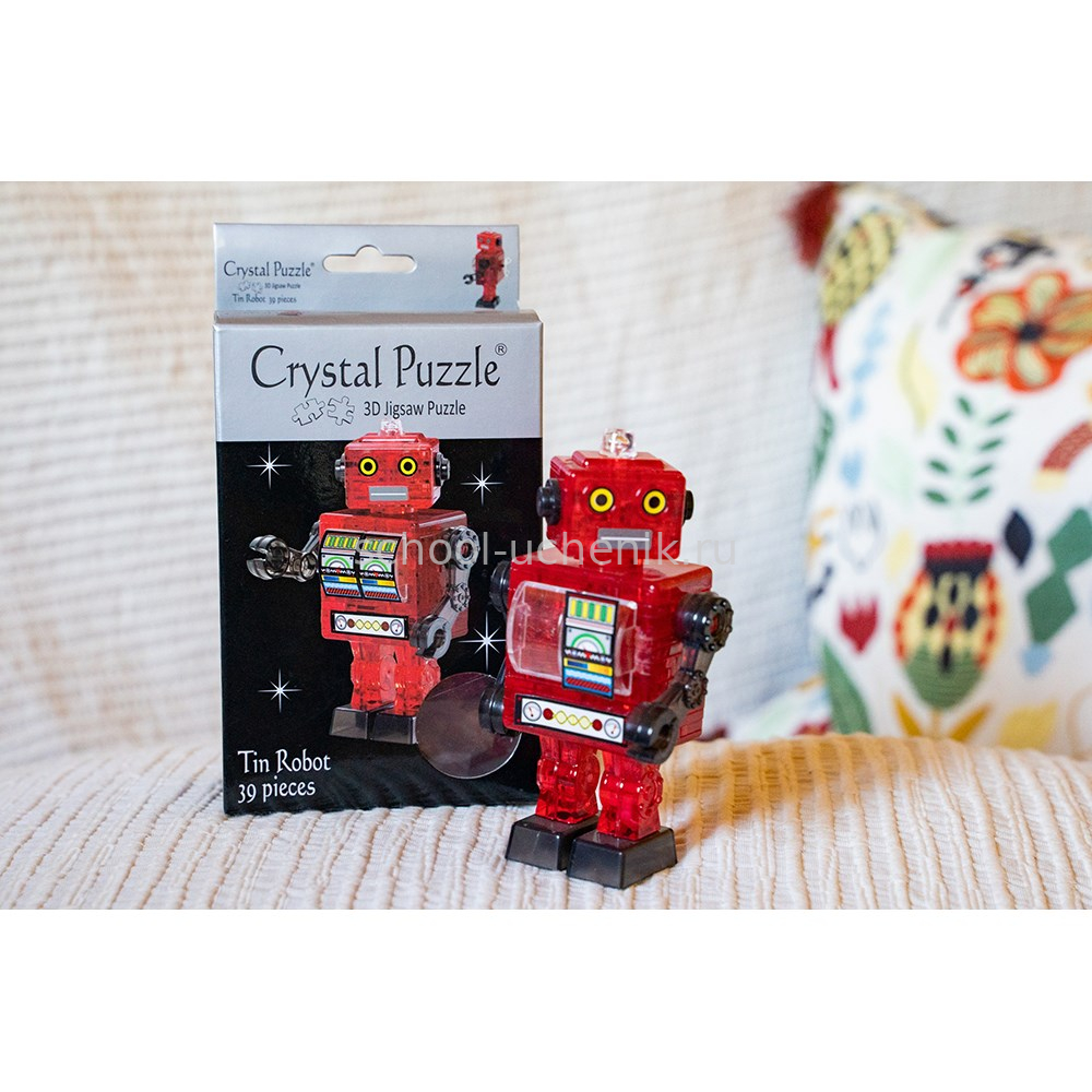 Этот симпатичный робот в ретро-стиле из серии Crystal puzzle станет отличной игрушкой для ребенка или украшением интерьера. Соберите 3D-пазл из 39 деталей, и у вас получится прочная фигурка с подвижными руками. Все детали сделаны из полупрозрачного пластика. Они прочно соединяются друг с другом и не рассыпаются.
