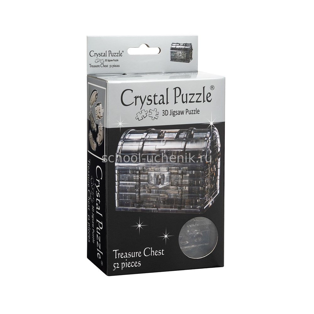 Это волшебный сундучок – не просто красивая кристальная фигурка, а настоящий 3D-пазл из серии Crystal puzzle из 52 деталей! Собрав пазл правильно, вы сможете открывать сундук с помощью специального ключика, хранить в нем памятные сердцу вещи и использовать в качестве шкатулки. Трехмерная головоломка повышенной сложности придется по душе всем, кто любит непростые задачи.