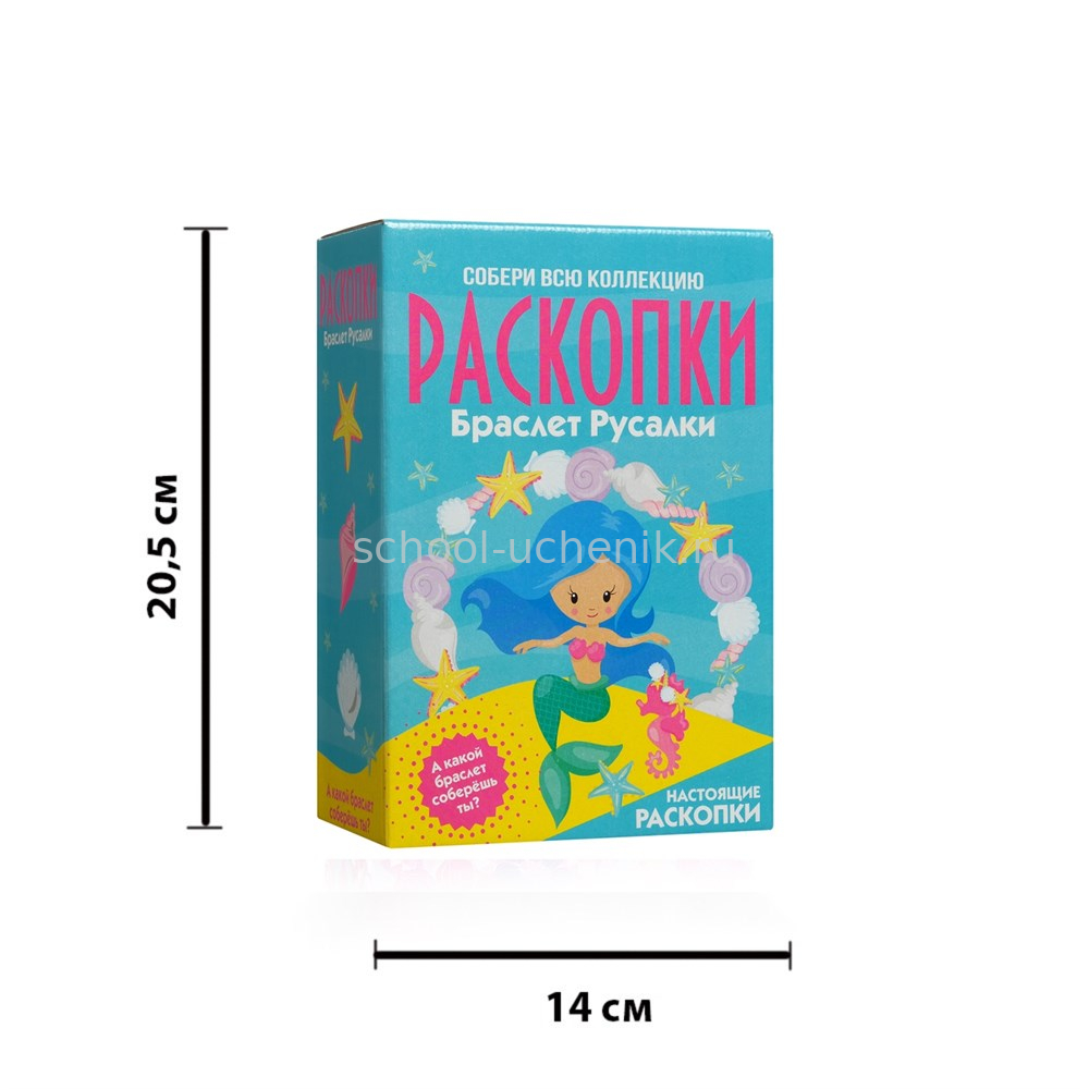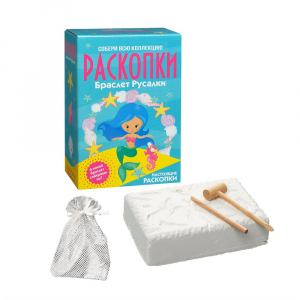 Давным-давно чудесные русалки спрятали свои украшения на дне волшебного моря. Сегодня они могут стать вашими! Возьмите специальные инструменты, смочите грунт водой и начинайте аккуратно, слой за слоем, убирать породу. Когда откопаете все находки, помойте их и высушите. Из красивых морских бусин можно сделать браслет точь-в-точь как у морских русалок! Чтобы его было удобнее хранить, в наборе есть специальный мешочек.