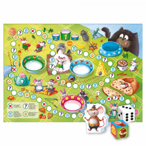 Комплектация:Игровые кубики: 2шт. Карточки с заданиями: 15шт. Карточки с едой: 42шт.