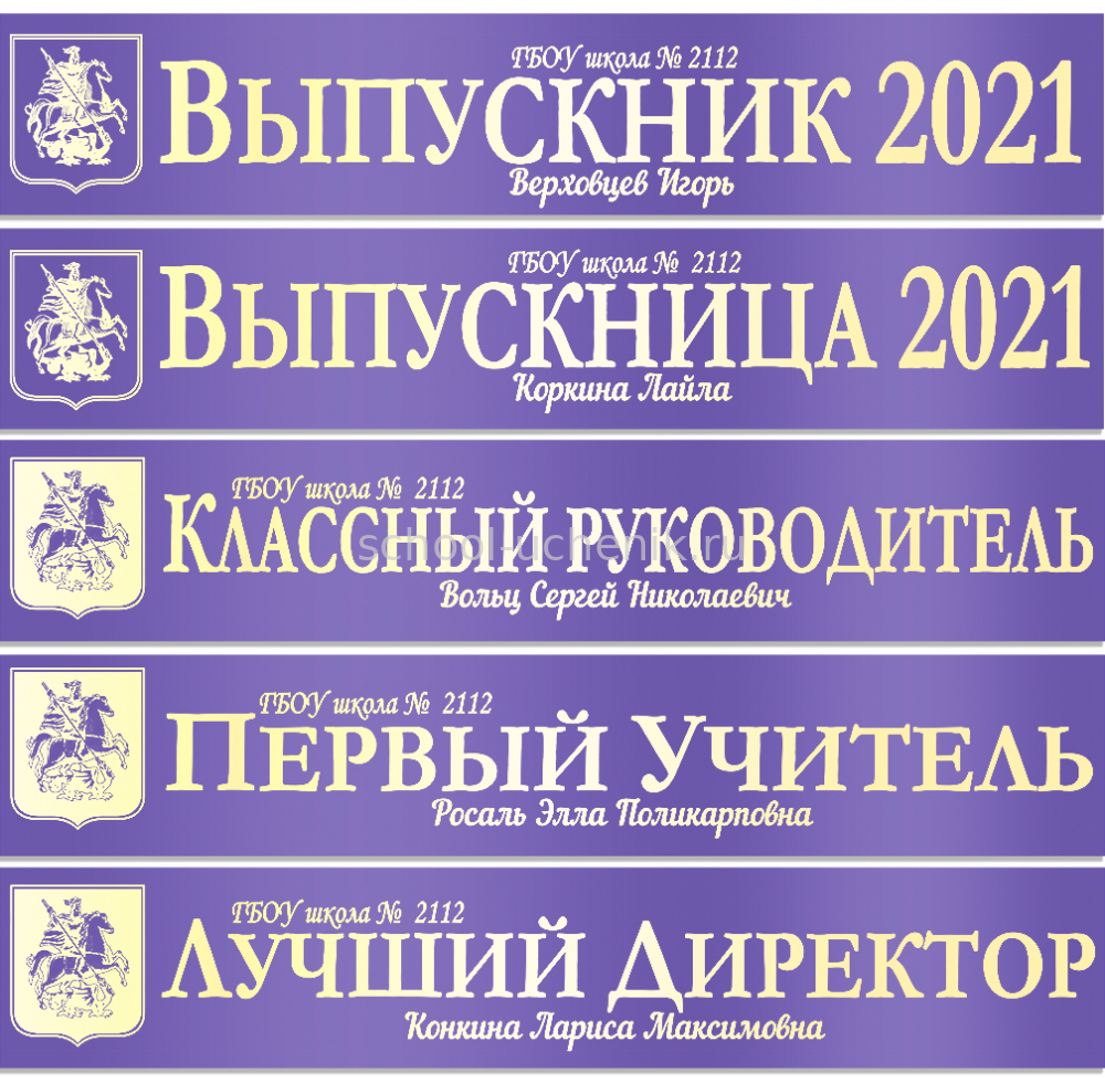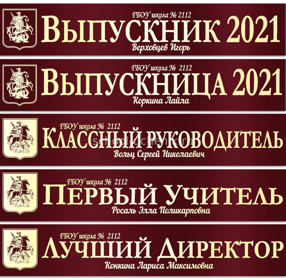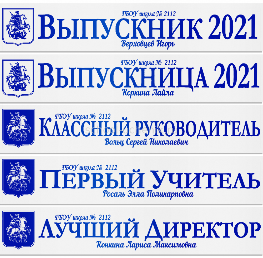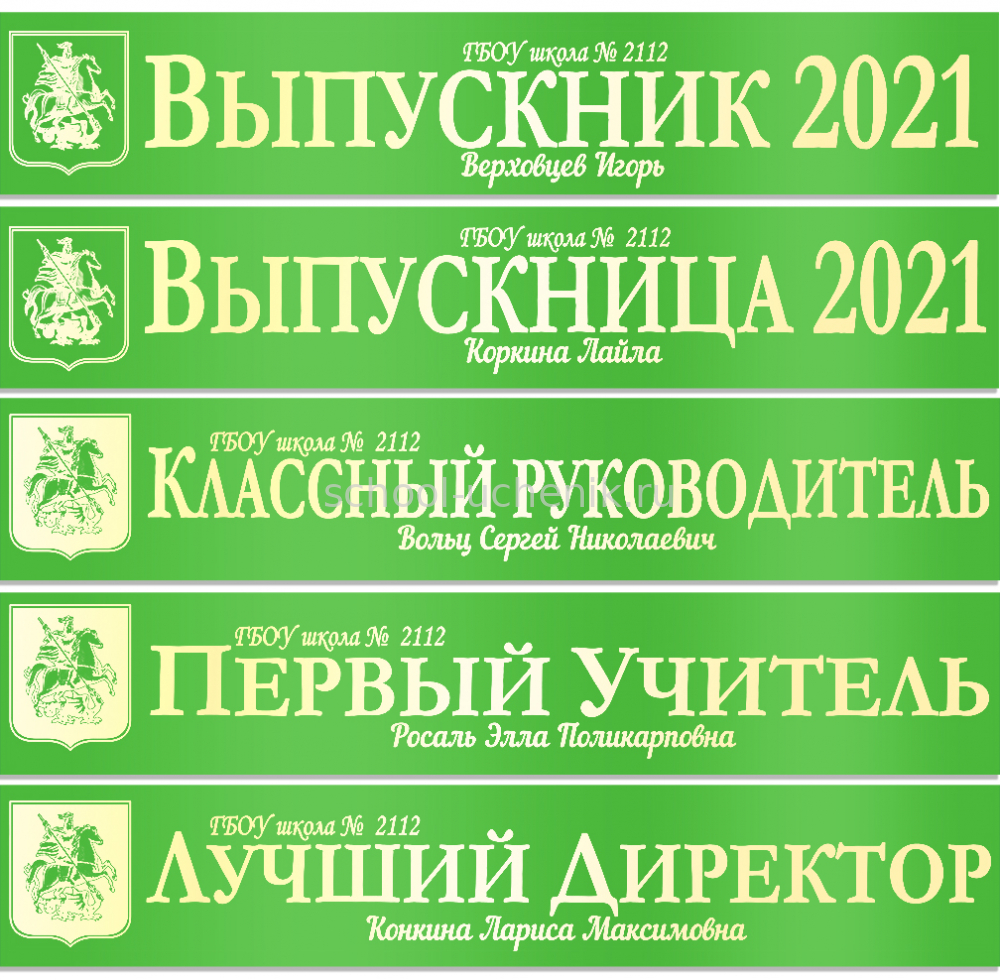 Именные атласные ленты выпускникам и учителям "Герб Москвы" цвет на выбор