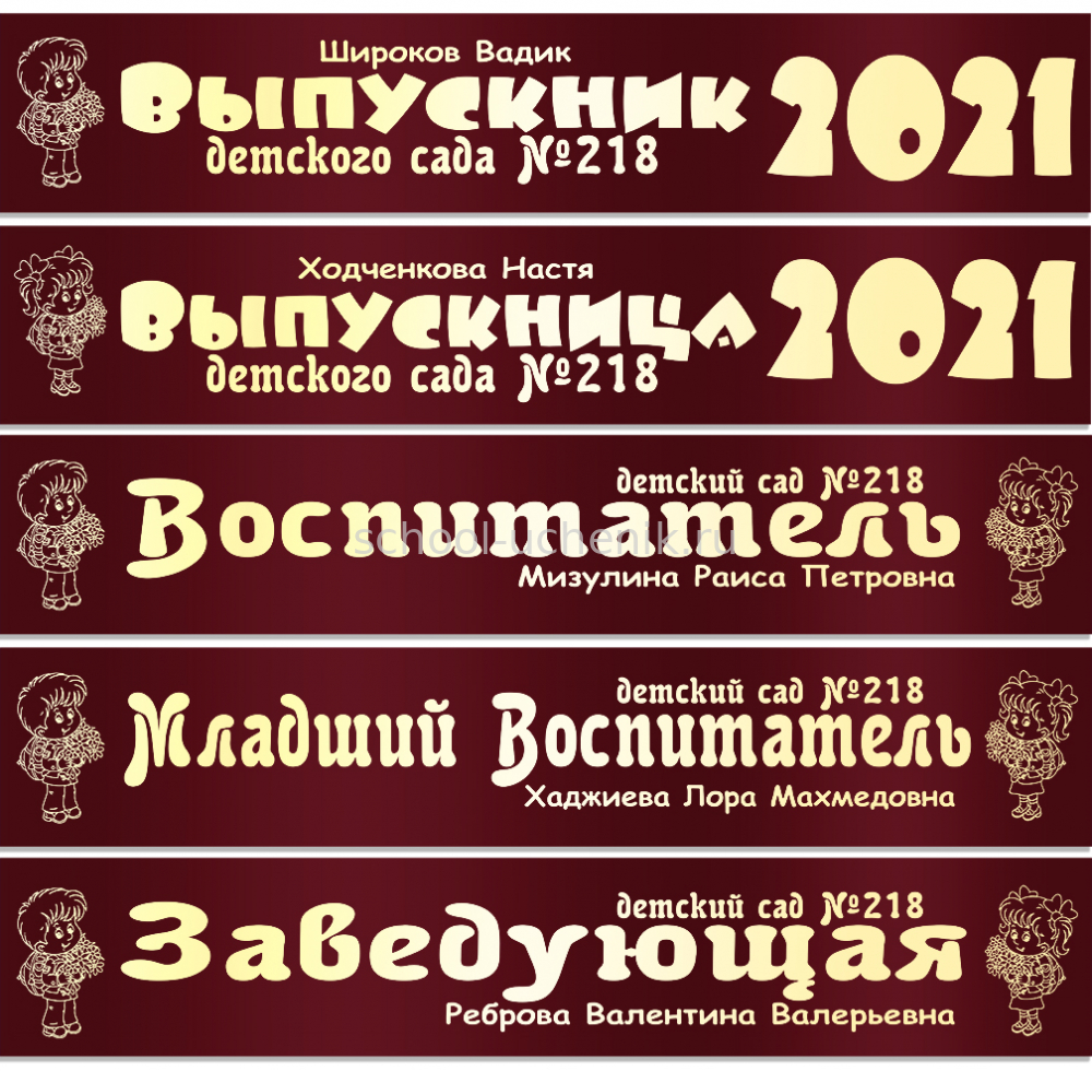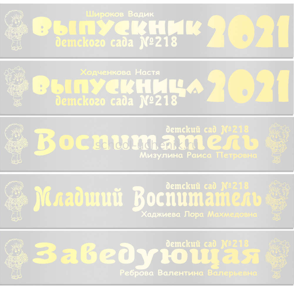 Именные атласные ленты выпускникам и учителям "Девочка и мальчик" цвет на выбор