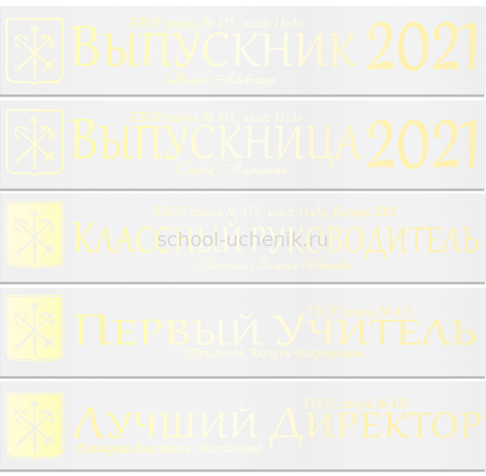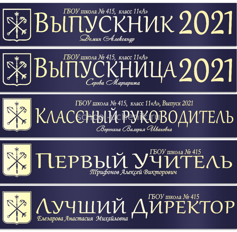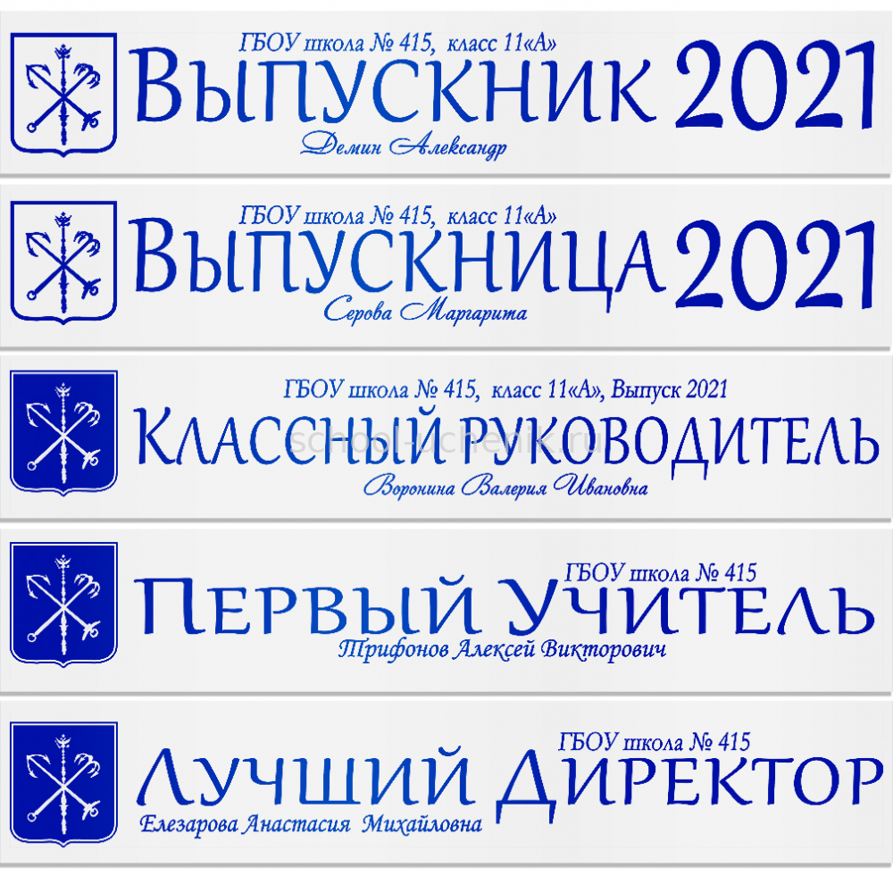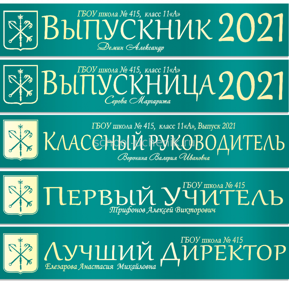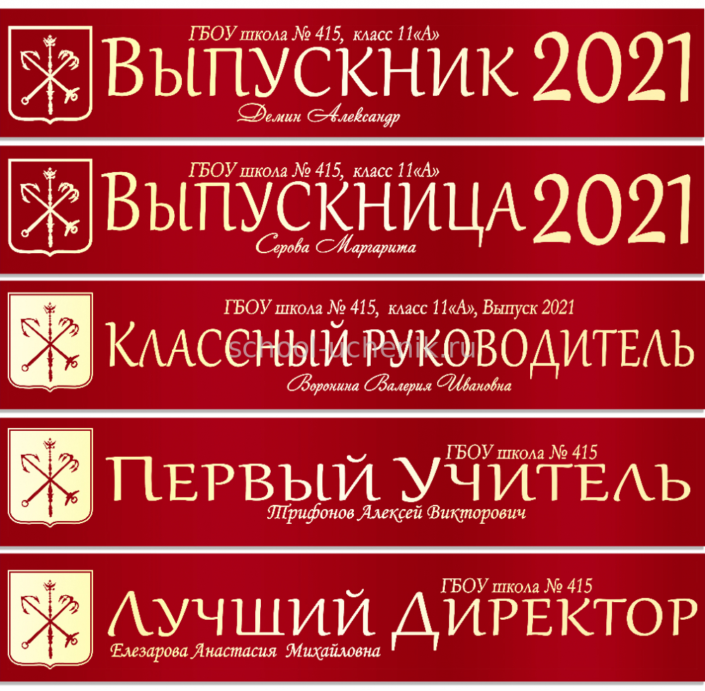 Именные атласные ленты выпускникам и учителям "Герб Санкт-Петербурга" цвет на выбор