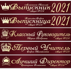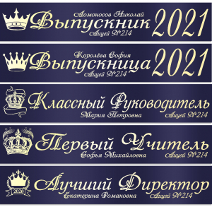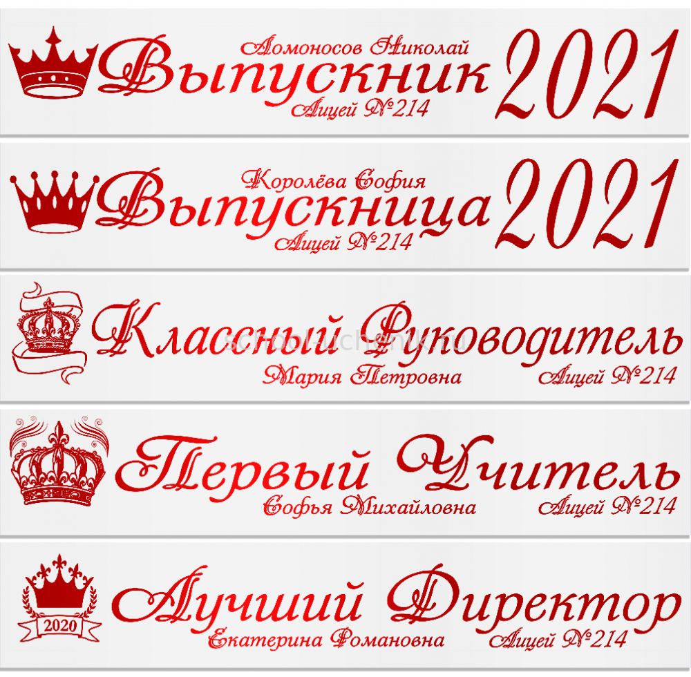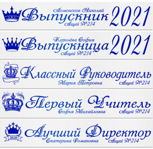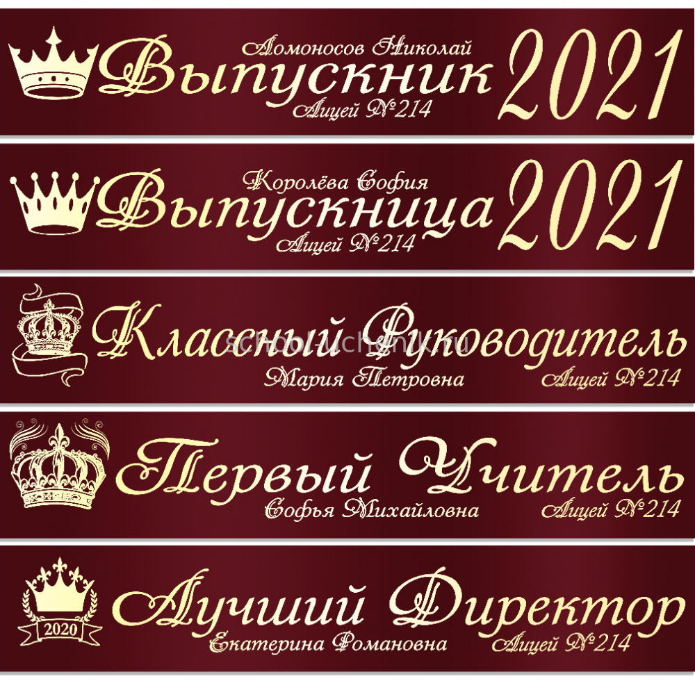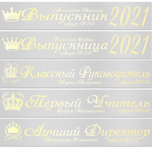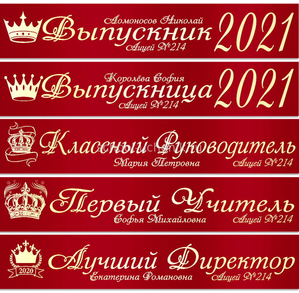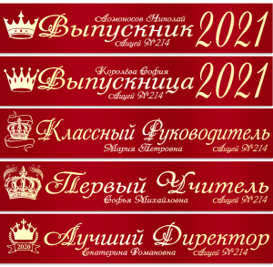 Именные атласные ленты выпускникам и учителям "Корона" цвет на выбор
