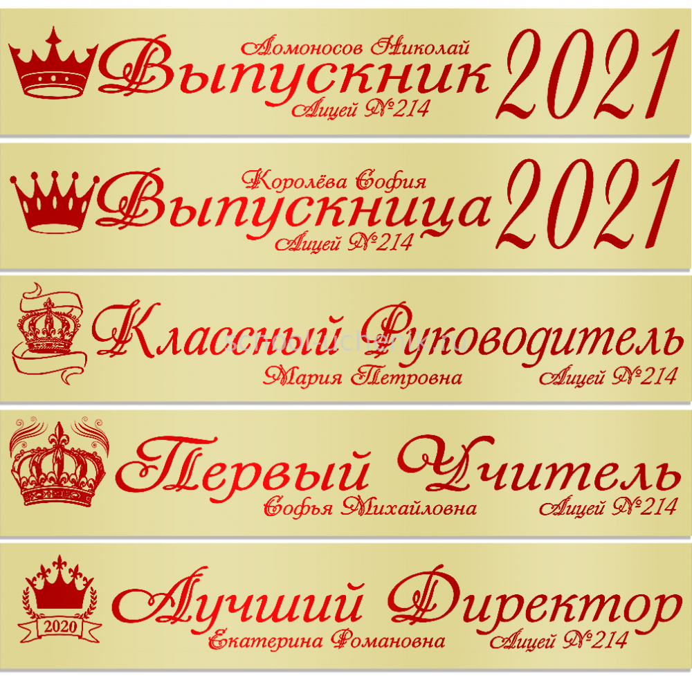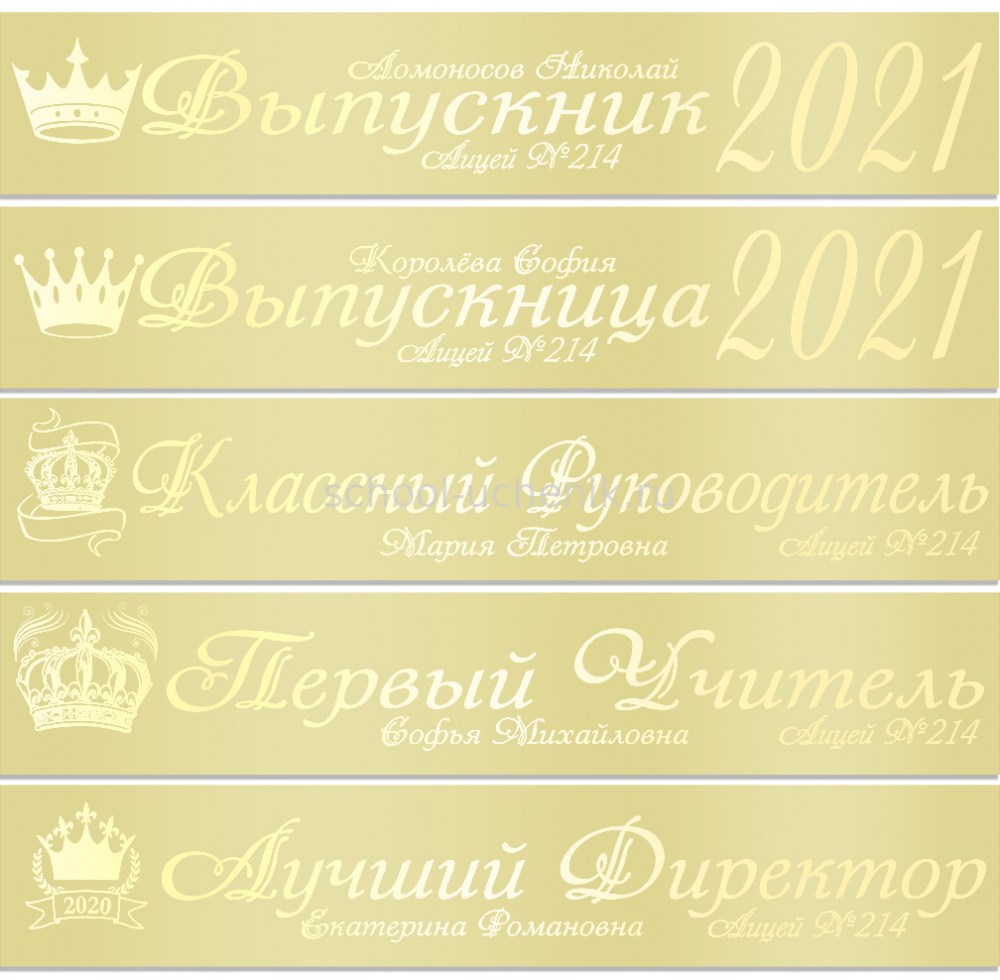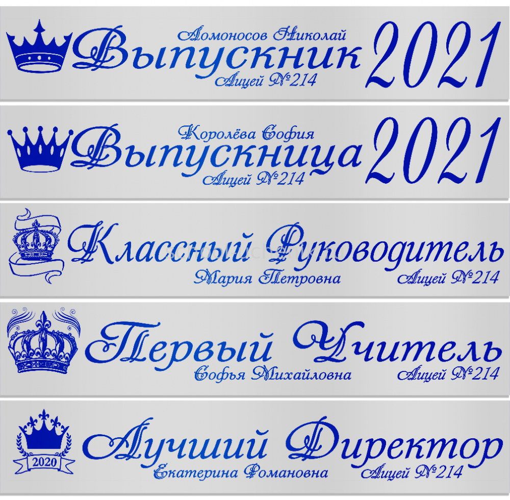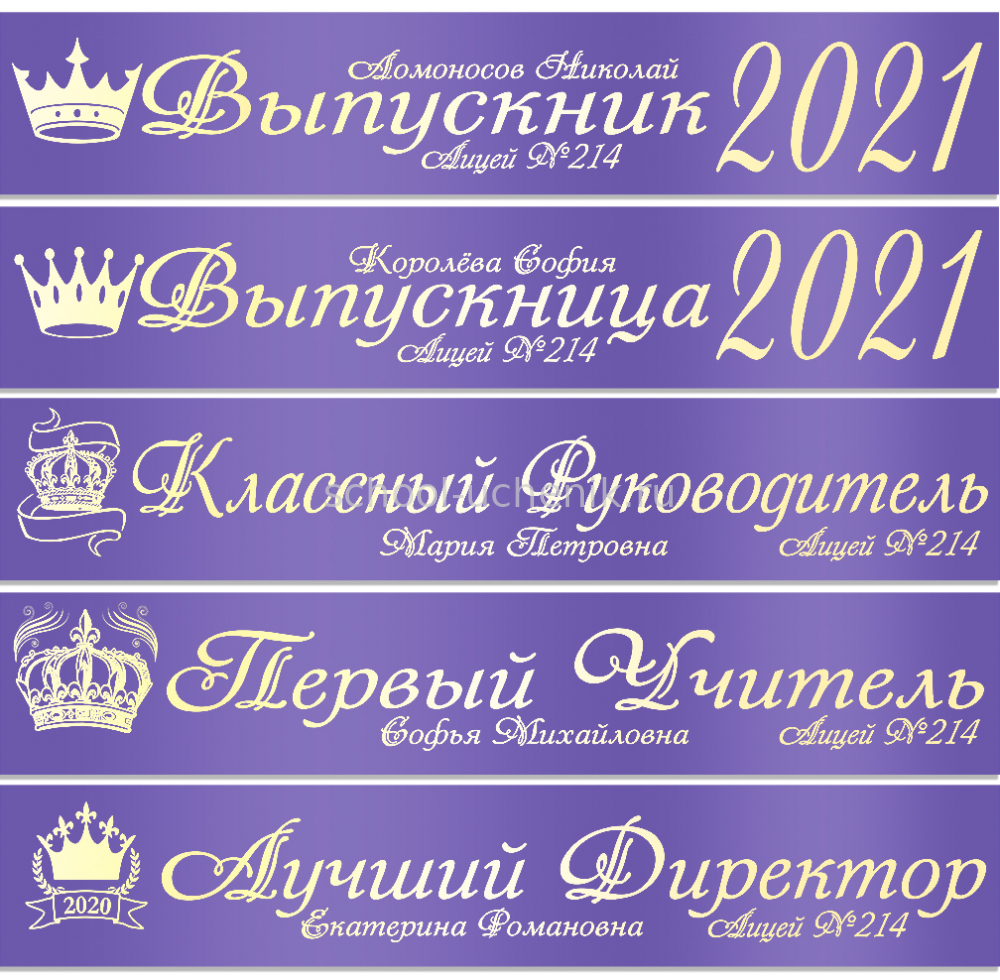 Именные атласные ленты выпускникам и учителям "Корона" цвет на выбор