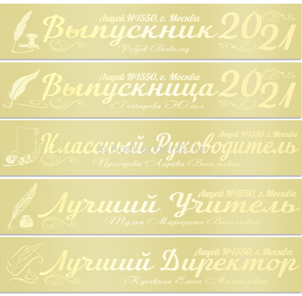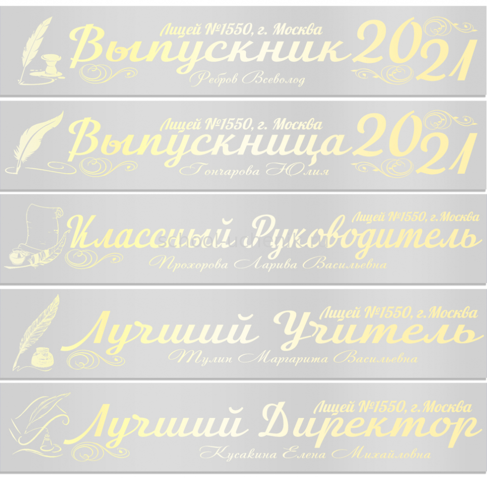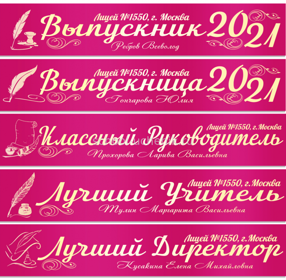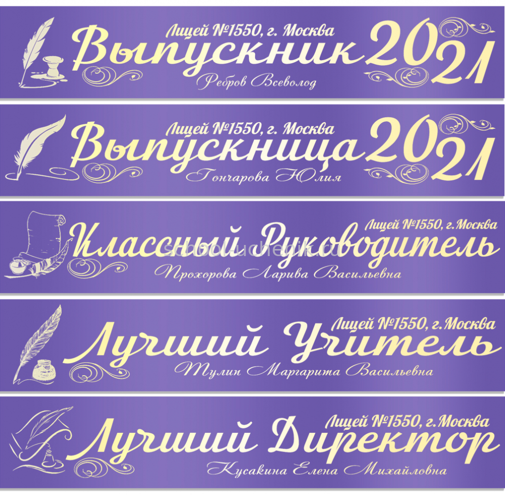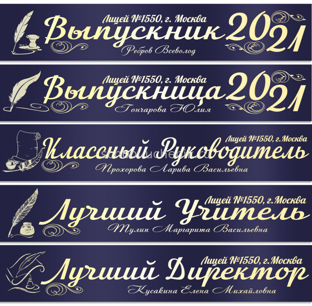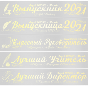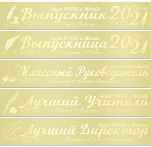 Именные атласные ленты выпускникам и учителям "Перо" цвет на выбор