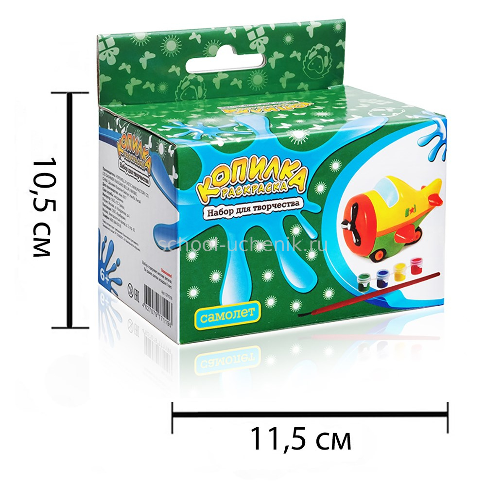 В комплекте: копилка из пластика, краски 4 цветов, кисточка