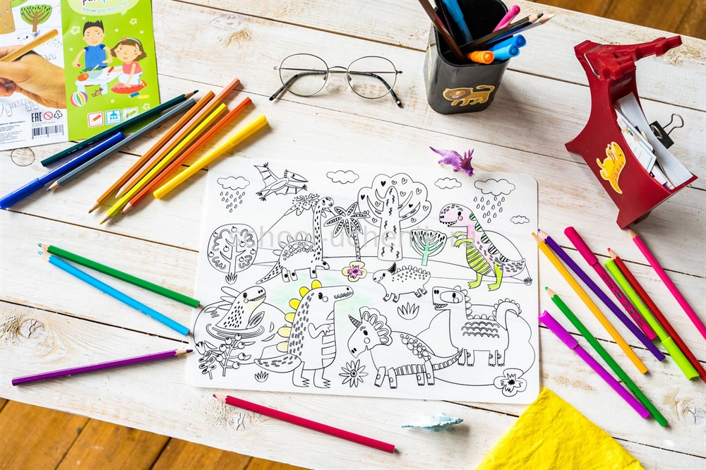Но главный секрет этой раскраски в том, что она еще и удобный коврик для детского столика, который не скользит и хорошо защищает поверхность от грязи и повреждений. На таком коврике можно обедать, заниматься лепкой или рукоделием и рисовать.
