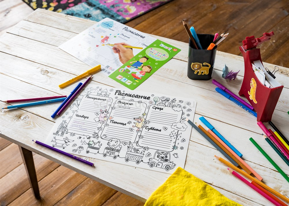 Многоразовый коврик-раскраска «Расписание» всегда должен быть у школьника под рукой! Этот коврик для творчества поможет ребенку все успевать и сделать уроки вовремя. Заполняйте специальные ячейки нужной информацией, а также раскрашивайте веселых зверей фломастерами или карандашами. В любой момент краски можно стереть и начать все заново!