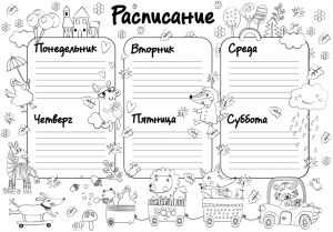 Коврик для творчества. Многоразовая раскраска «Расписание Зверюшки» (M)