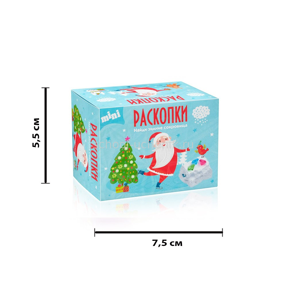 Под Новый Год случаются разные сюрпризы! Какие ожидают вас в специальном подарочном наборе для проведения раскопок? Давайте узнаем! Археологическая игра оформлена в праздничном стиле, внутри — грунт с красивыми зимними сокровищами. Возьмите инструменты археолога и попробуйте извлечь все драгоценности, не пропустив ни одной. Для того чтобы проводить раскопки было проще, рекомендуем смочить брусок водой.
