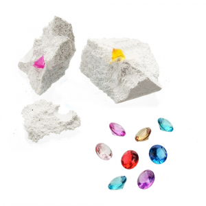 В наборе: брусок с артефактами внутри (три фигурные находки из пластика), деревянный стек для дробления. Цвета находок в ассортименте.