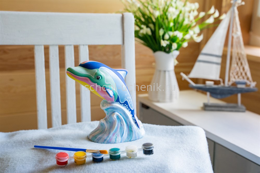 Набор для творчества «Дельфин» понравится всем юным художникам! В наборе уже есть все необходимое, чтобы создать красивый сувенир, который станет достойным украшением любой детской комнаты. В красивой красочной коробке вы найдете керамическую фигуру, краски, кисточку. Проявите фантазию, смешайте краски и создайте свой уникальный сувенир.