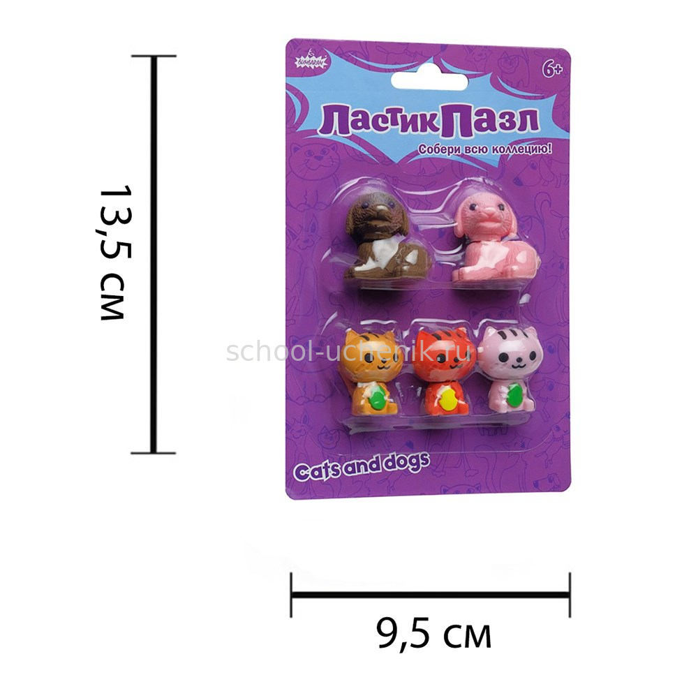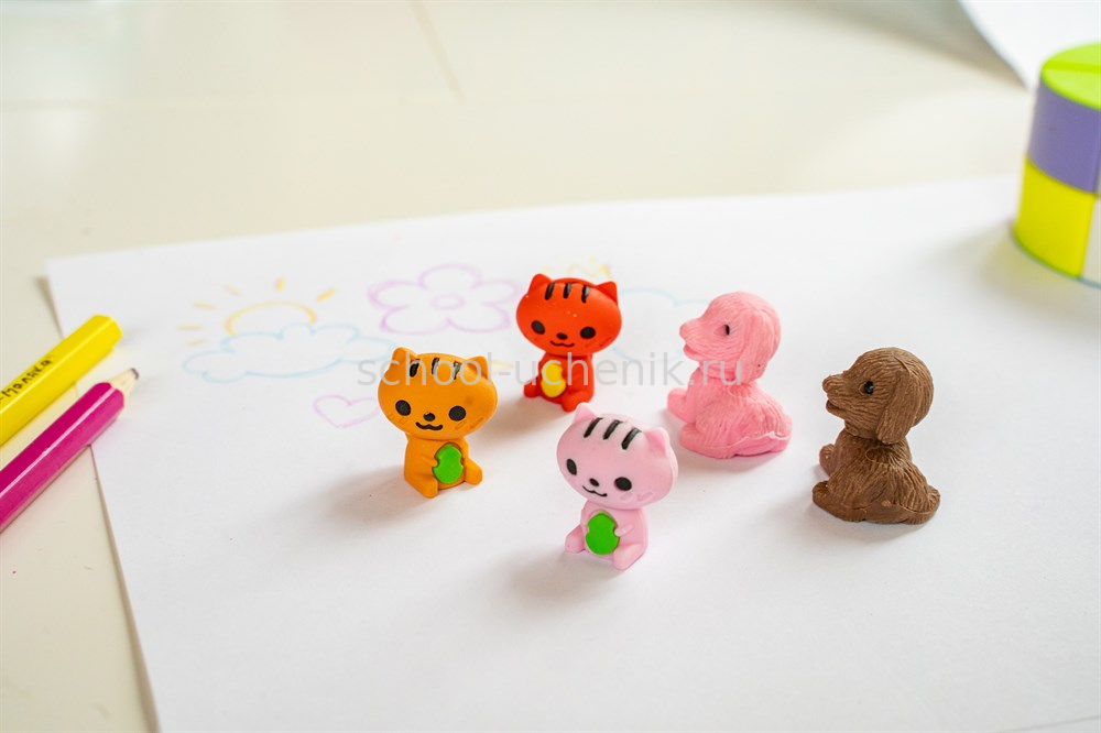 Этот набор придется по душе всем любителям домашних животных. Три котенка и два щенка – очаровательные фигурные ластики-пазлы, которые можно разбирать и собирать по частям. Маленькими ластиками удобно стирать, они пригодятся в школе, на работе или дома, оживят любой рабочий стол.