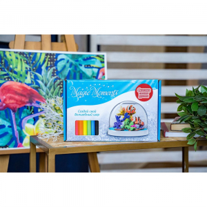Шары со снегом — это крошечный мир, который помещается на ладони и напоминает о волшебстве и красоте. В наборе есть все необходимое, чтобы сделать свой Волшебный шар. Сделайте из пластилина фигурку, поместите ее внутрь прозрачной сферы. Добавьте туда специальную жидкость и блестки, имитирующие снег. Плотно прикрутите обе части шара друг к другу, а затем потрясите его. Снег будет сверкать и кружиться вокруг вашей фигурки. Волшебный сувенир готов!