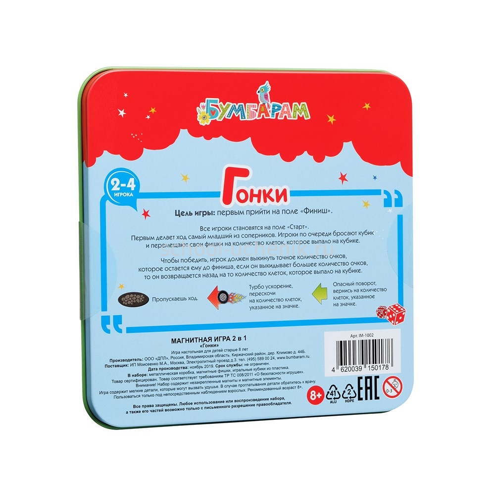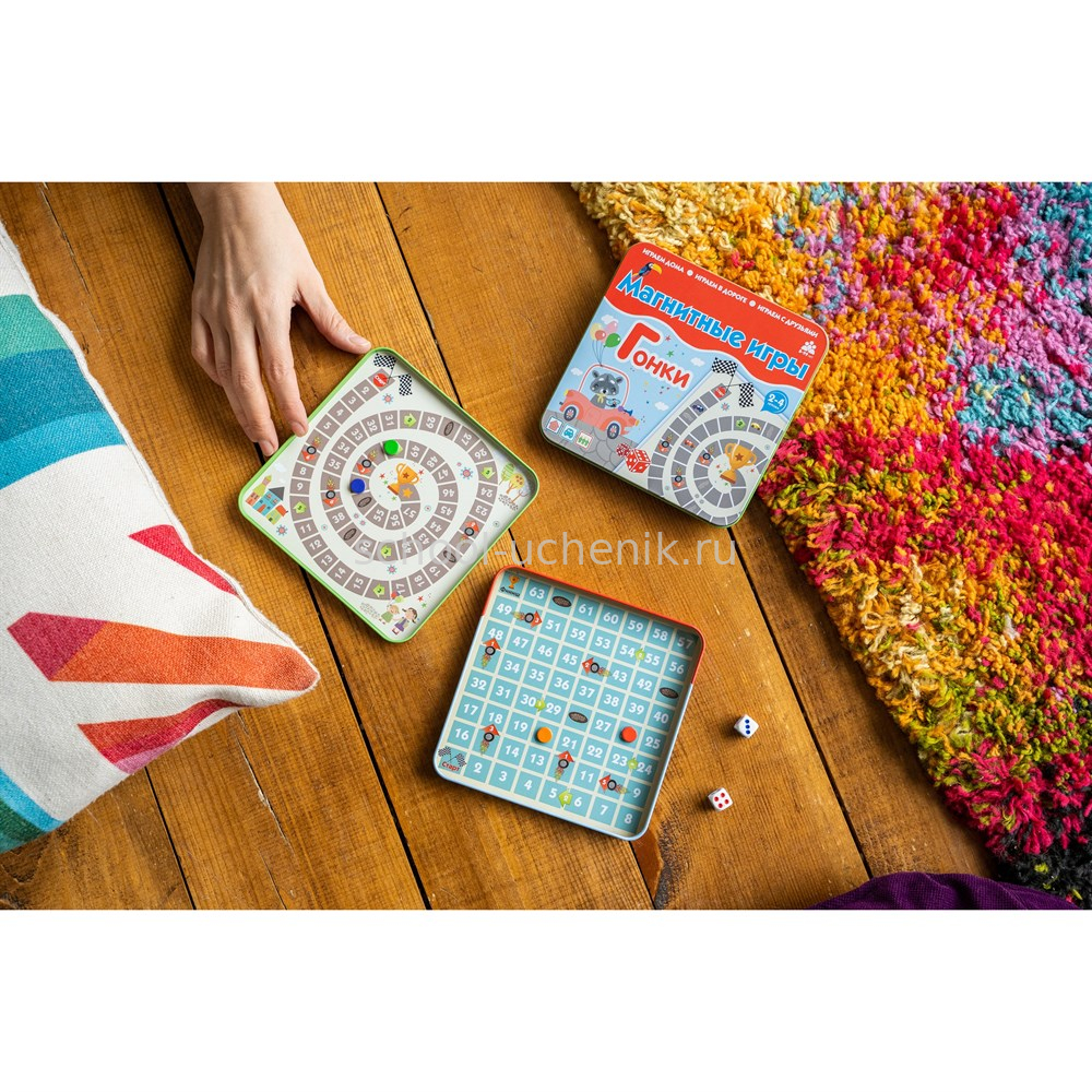 Магнитная игра «Гонки» — идеально подходит для детей, так как у нее достаточно простые правила и динамичный игровой процесс. В вашем распоряжении сразу 2 гоночных трека, на которых можно соревноваться с друзьями. Только самый смелый и удачливый приедет к финишу первым. Все магнитные детали плотно крепятся к металлической коробочке, что делает эту игры отличным вариантом развлечения как дома, так и в дороге.