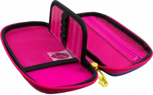 Пенал имеет одно большое отделение, разделенное перегородкой, на которой удобно можно разместить все ручки и карандаши, так же имеется удобное отделение-сеточка на молнии.