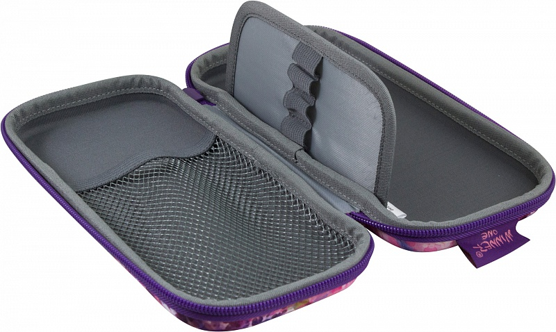 Пенал имеет одно большое отделение, разделенное перегородкой, на которой удобно можно разместить все ручки и карандаши, так же имеется удобное отделение-сеточка.