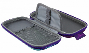 Пенал имеет одно большое отделение, разделенное перегородкой, на которой удобно можно разместить все ручки и карандаши, так же имеется удобное отделение-сеточка.