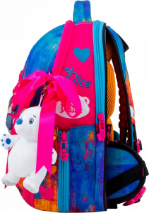 Ранец школьный каркасный, имеет государственный патент РФ №108984, МКПО 03-01, от 02.08.2017 г., украшен объёмной 3D картинкой - это совершенно уникальное решение, сочетающее яркую, большую картинку и ощущение, что понравившийся мишка или котенок настолько реальны (благодаря 3D технологии), что они могут «ожить», а благодаря новой технологии мы добились самых ярких и сочных цветов. Мы максимально хотим сохранить для детей ощущение сказки и волшебства, и окунуть их в мир чудес. Проработанные детали, украшения в виде шелковой вышивки и аппликации, помогают нам этого достичь.