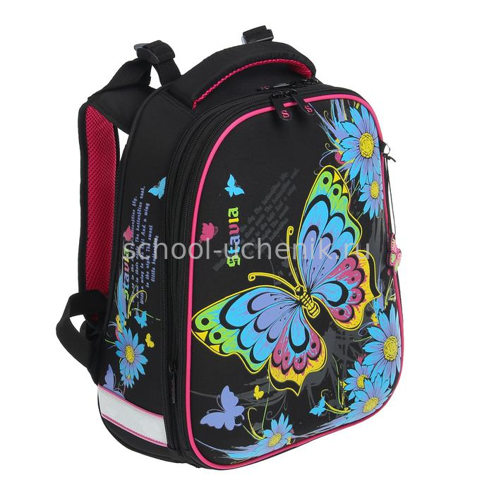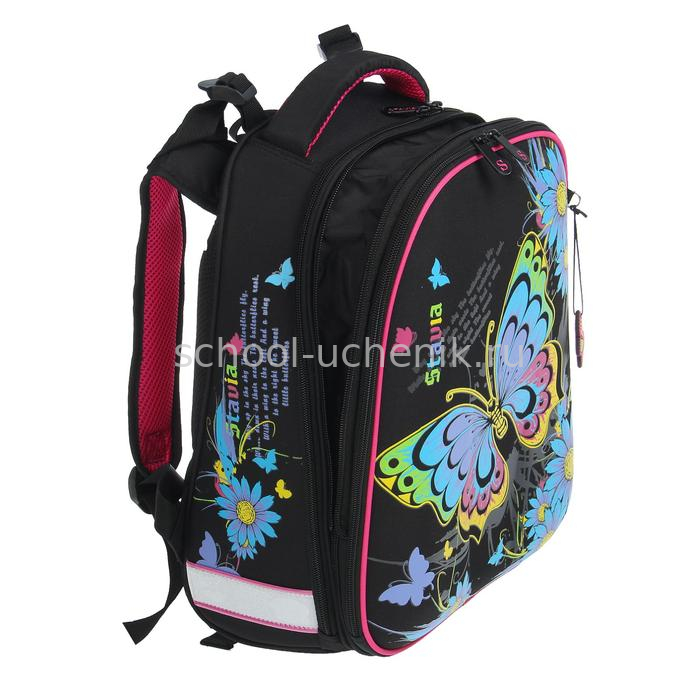 Формованный ранец для начальной школы. Два вместительных отделения, с возможностью раздвижки в ширину за счет дополнительной вставки. «Плавающие» перегородки для тетрадей и учебников, удобный карман-органайзер. Спинка с анатомическими элементами, мягкие, регулируемые по длине лямки. Система регулировки лямок по росту ребенка. Удобная ручка для переноски и дополнительная петлевая ручка. Светоотражающие элементы на лямках и корпусе ранца