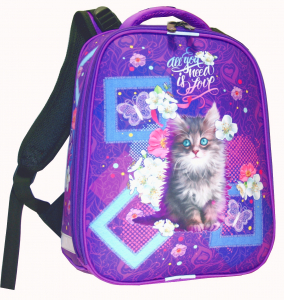Формованный ранец с системой трансформации для начальной школы. Два вместительных отделения. «Плавающие» перегородки для тетрадей и учебников, удобный карман-органайзер. Возможность увеличения объема ранца за счет дополнительной вставки. Спинка с анатомическими элементами, мягкие, регулируемые по длине лямки. Система регулировки лямок по росту ребенка. Удобная ручка для переноски и дополнительная петлевая ручка. Светоотражающие элементы на лямках и корпусе ранца.