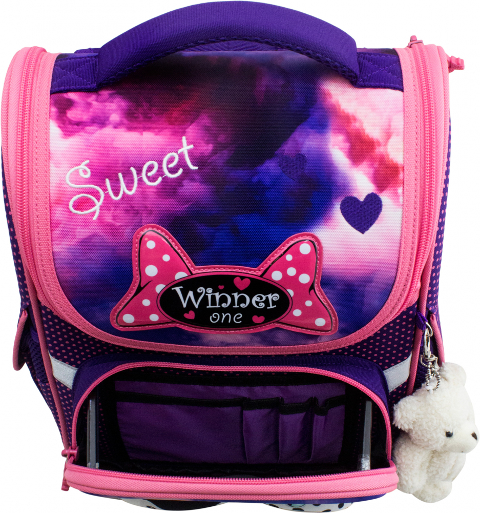 На передней части ранца расположен карман, украшенный объемной 3D картинкой на молнии.