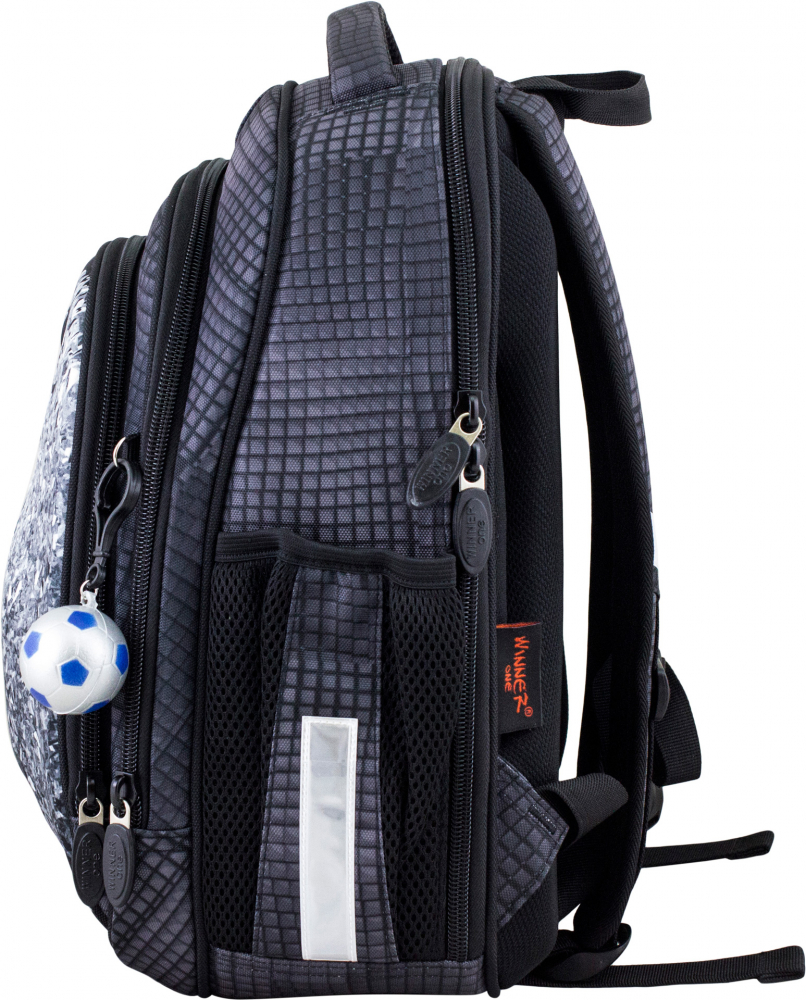 Светоотражающие элементы расположены на передней, задней и боковой частях ранца, для обеспечения безопасности в темное время суток.