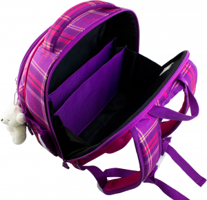 Основное большое отделение у спины, с тканевыми разделителями, для школьных принадлежностей.