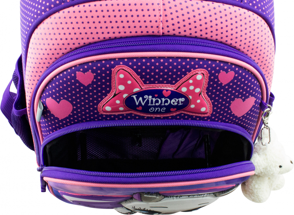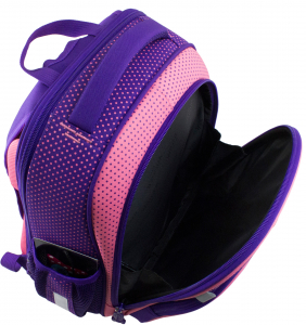 Основное большое отделение у спины, с тканевыми разделителями, для школьных принадлежностей.