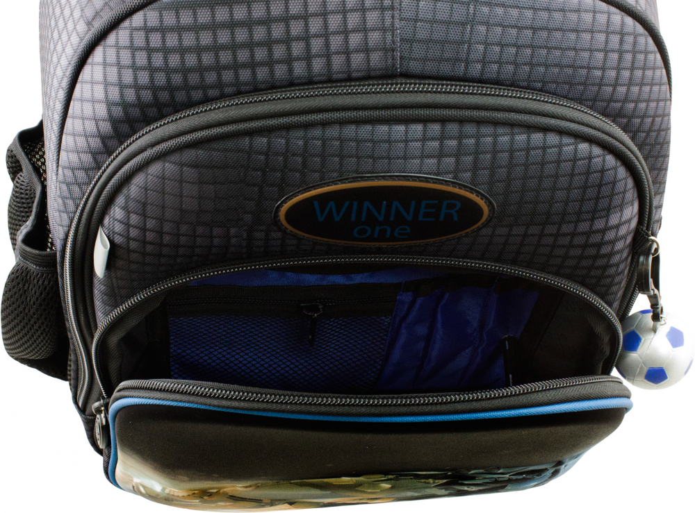 Основное большое отделение у спины, с тканевыми разделителями, для школьных принадлежностей.